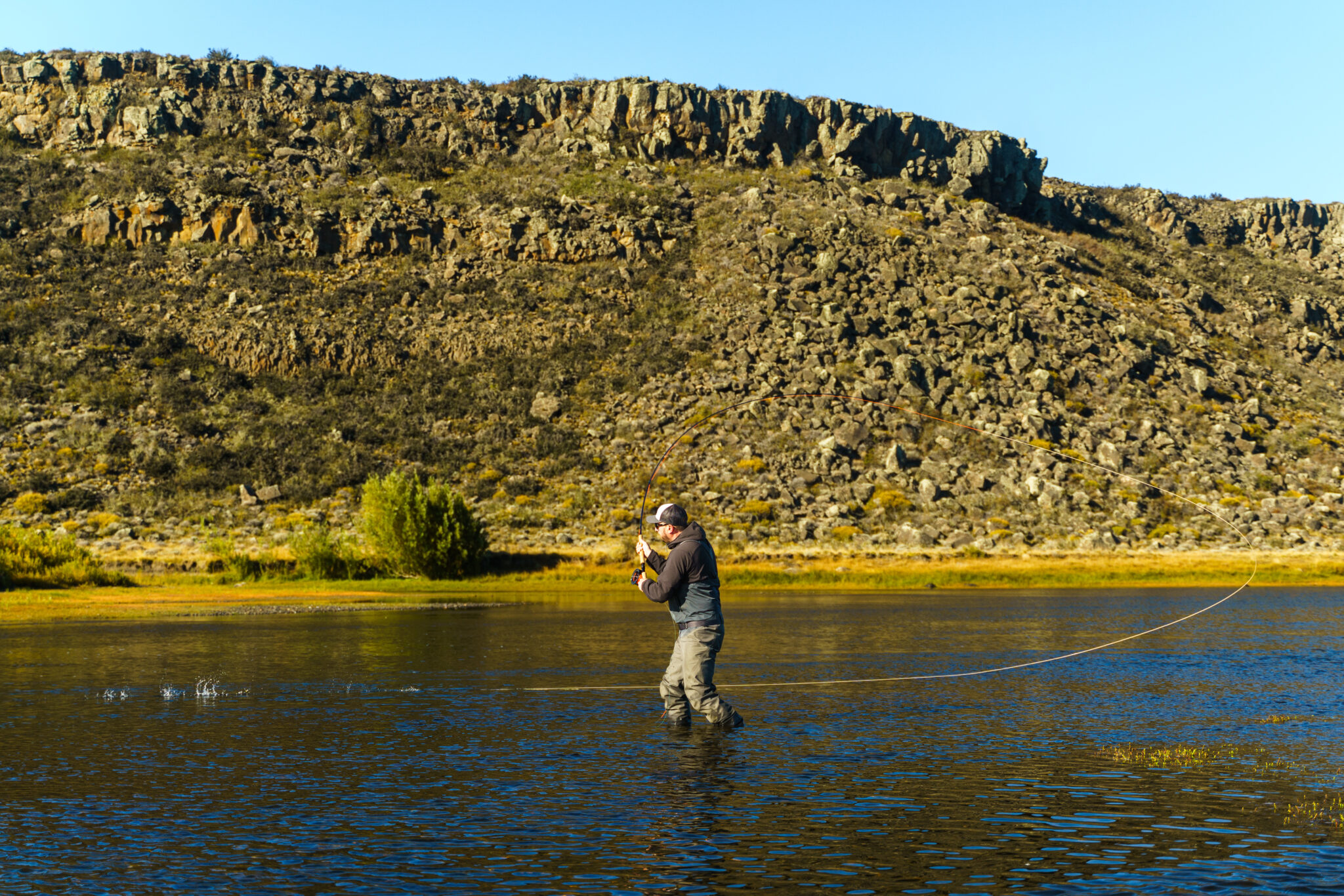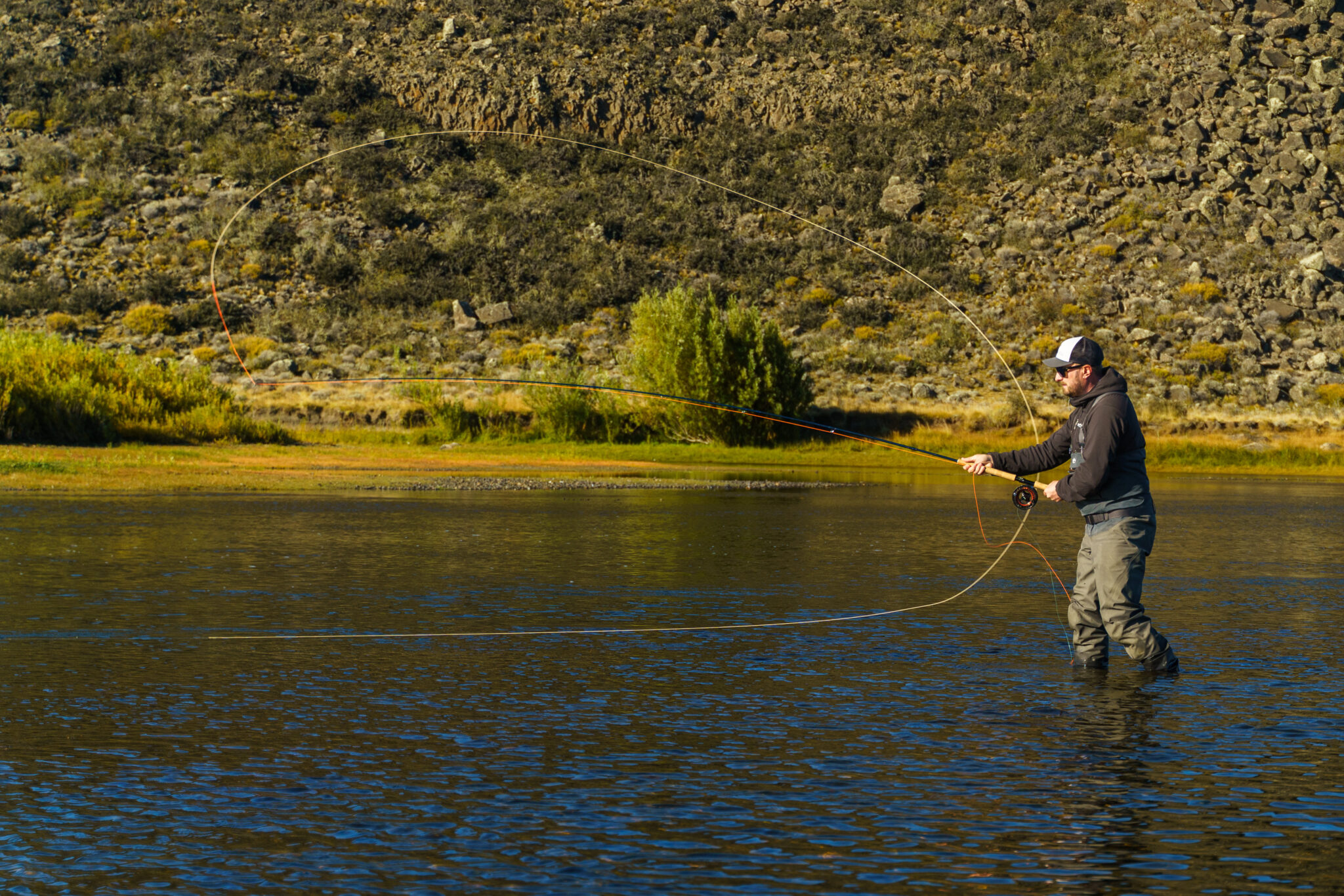 The setting was Zone 1, in “Peca Pool” — a new addition this season. A narrow, shallow channel with a good flow, it’s ideal for classic swung-fly techniques.